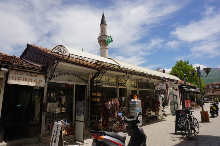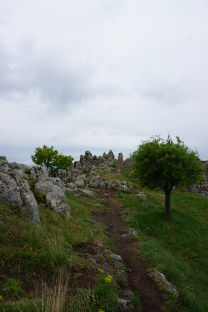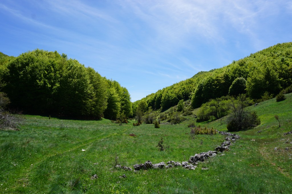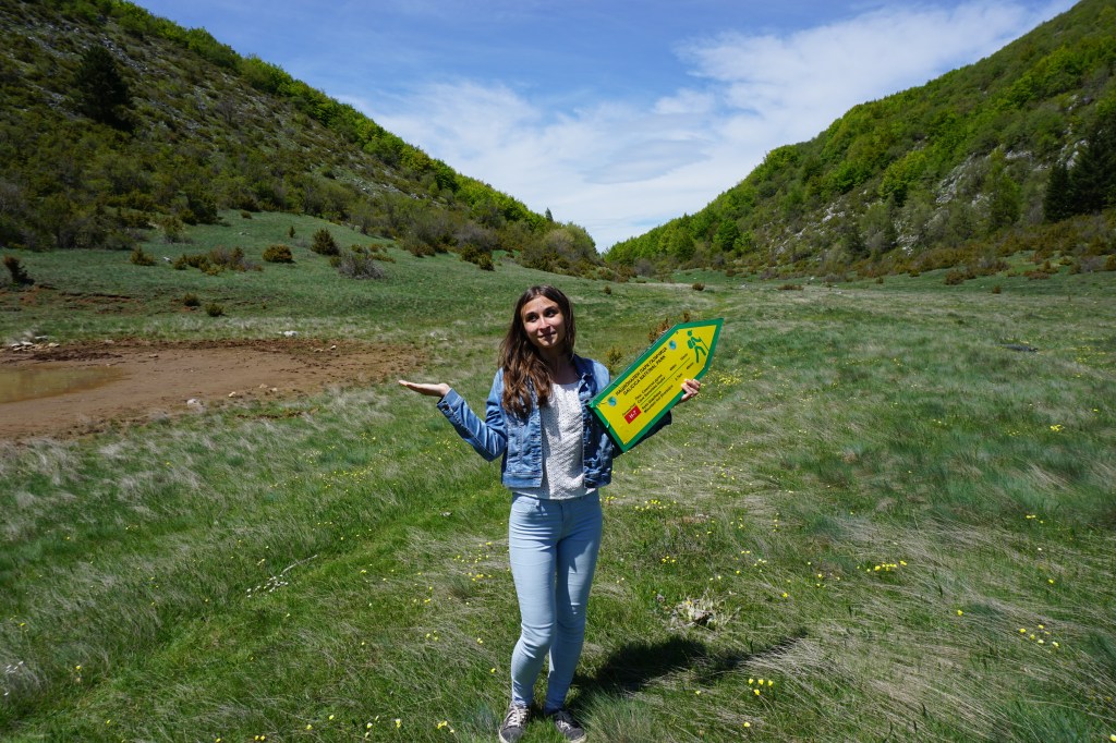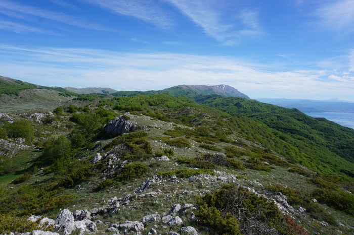 Tri Mazi to szczyt w Narodowym Parku Galicica, który liczy sobie 1628 m n.p.m., a jego nazwa oznacza dosłownie „Trzej ludzie/mężczyźni”. My dostaliśmy się do niego, zostawiając auto przy jednym z hoteli w miejscowości Konjsko, skąd bezpośrednio wiedzie szlak. Stąd mamy ok. 5,5 km w jedną stronę do Samotskiej Dupki – tak naprawdę przechodzimy najpierw przez wieś, gdzie możemy pooglądać pasące się owce. Później czeka nas najbardziej pochyły odcinek malowniczo położonej trasy – cały czas idziemy czymś w rodzaju wydeptanej polany z widokiem na jezioro Ochrydzkie. Wokół jest mnóstwo kwiatów i motyli, za to niestety oznakowanie szlaku jest bardzo ubogie i przy żadnych z rozwidleń nie wiadomo, w którą stronę iść. My wspomagaliśmy się przy tym aplikacją Maps.me, która wykrywała naszą lokalizację i mniej więcej pokazywała szlaki. Do dokładności brakowało jej kilku ładnych metrów, ale i tak bardzo pomagała nam przez większość drogi, zwłaszcza na rozległych polanach, więc polecam się w nią zaopatrzyć.