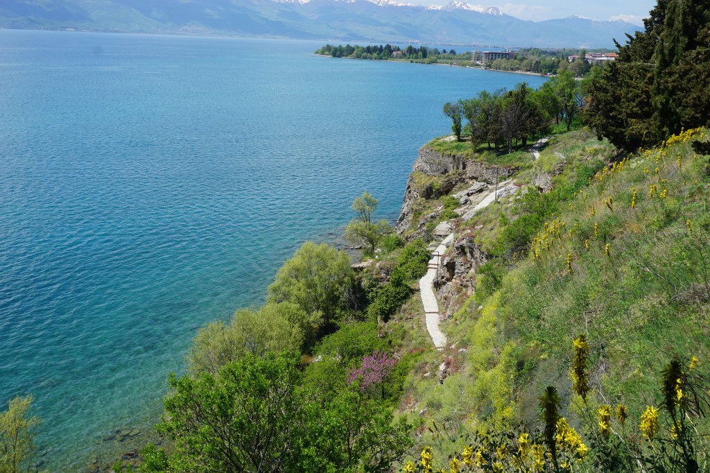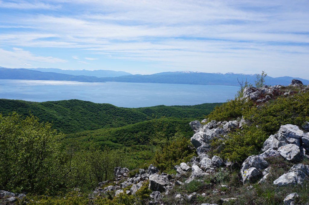 Wchodzenie jest przyjemne, gorzej z zejściem ze względu na sporą stromiznę. Widoki z góry są powalające, bo widać całą panoramę jeziora Ochrydzkiego i Ochrydy z jednej strony, z drugiej natomiast daleko rozciągające się połacie zielonego Parku Narodowego. Na pewno jedne z piękniejszych górskich widoków, jakie przyszło mi oglądać, więc gorąco polecam.