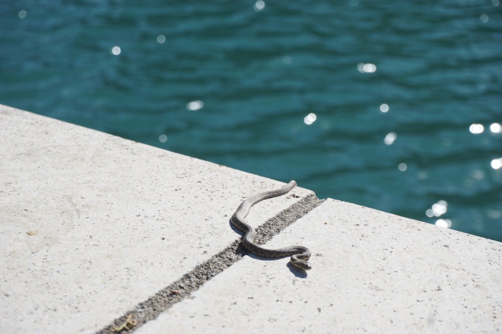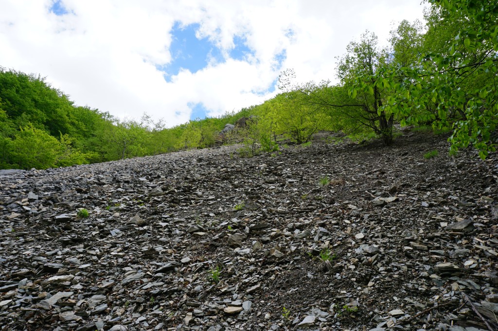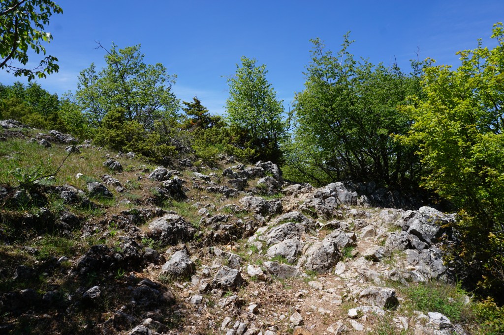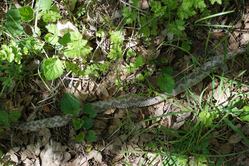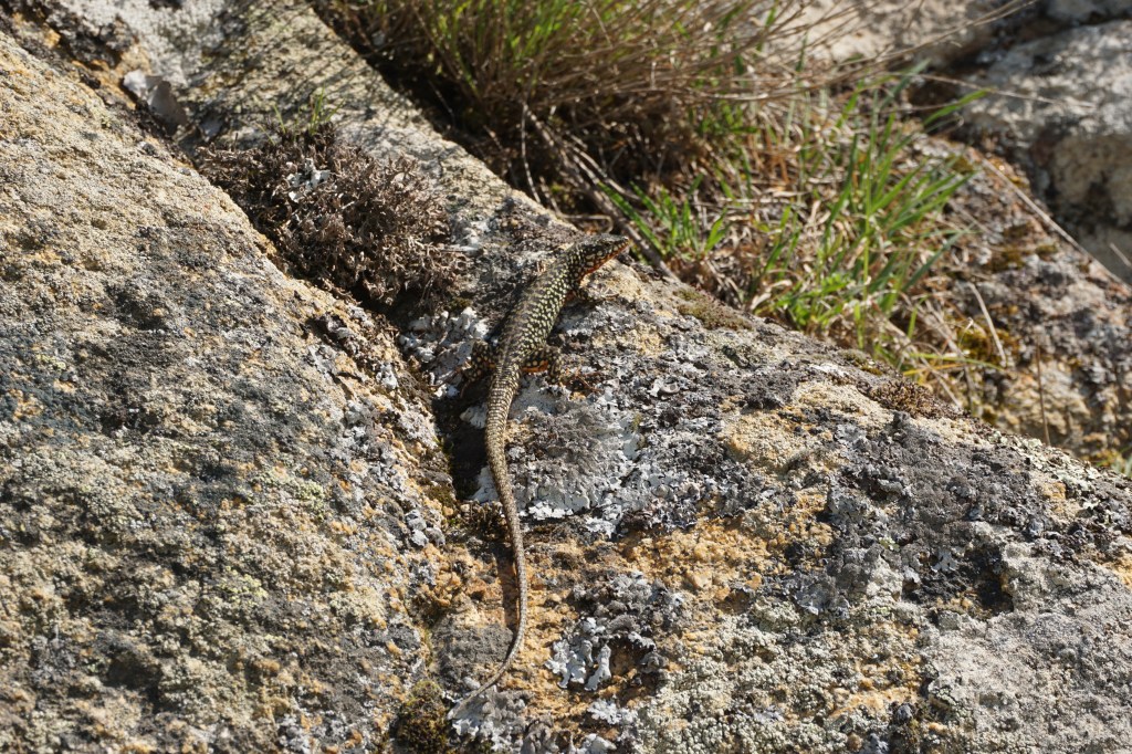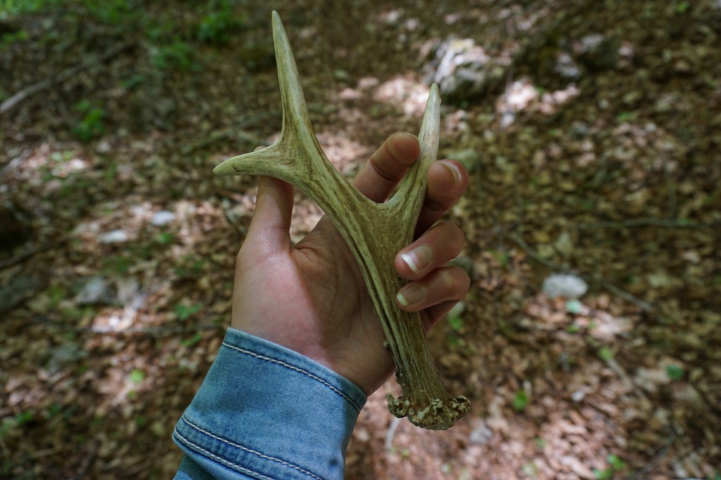 Po przejściu tego odcinka nachylenie staje się znacznie mniejsze, w wielu momentach jest wręcz po prostu płasko. Nad głowami zamiast kabli mamy drapieżne ptactwo, polana jest intensywnie zielona, czasem spacerujemy po krótkich odcinkach z kamieni czy przez mały lasek, gdzie znaleźliśmy wylinkę żmii. W trawie z kolei dostrzegliśmy róg zgubiony przez jelonka w okresie dojrzewania – udało nam się go nawet w pełni legalnie przetransportować do Polski (problemy z porożami zaczynają się ponoć dopiero, gdy ich waga przekracza 3 kg).