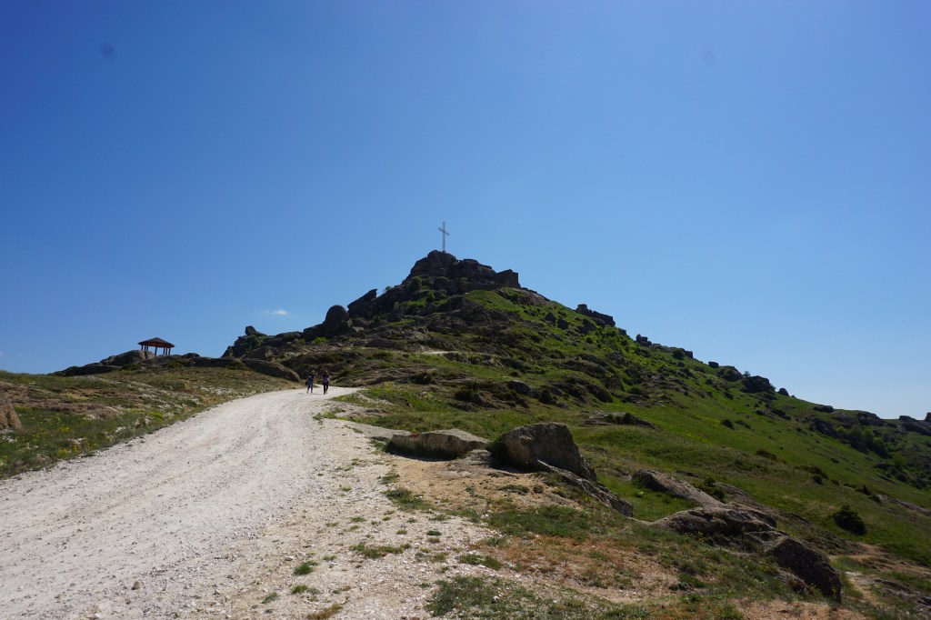 Na szczycie prócz ruin stoi teraz ogromny, metalowy krzyż podświetlany nocą (dość częsty motyw przewijający się przez całą Macedonię). Za dnia nie robi specjalnego wrażenia, co więcej można spotkać tam miejscowych popijających piwko i wygrzewających się bez koszulek. Jest więc dużo potłuczonego szkła i akurat dotarcie na samiuteńki szczyt nie napawa wielką satysfakcją, przyjemniejsza wydaje się sama wędrówka. Podejście nie jest trudne, większość osób nie powinno mieć z nim problemu. Po drodze jest altanka, są też czasem ławeczki albo po prostu przystępne do odpoczynku murki.