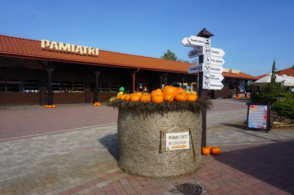 Jak z kolei kończy się wycieczka? Możemy wrócić dokładnie tą samą kolejką, a możemy też na pieszo poznawać resztę uroków tego terenu. Znajduje się tutaj dość duża strefa gastronomiczna nie tylko z obiadami, ale też słodkimi przekąskami i lodami. Część stoisk była jednak na stałe zamknięta zapewne ze względu na mniejszą ilość turystów, czas posezonowy i sytuację epidemiczną. W jednym z budynków odbywał się nawet festiwal czy też dzień dyni, można było wyrzeźbić własną pod okiem obsługi. Z braku czasu nie skorzystaliśmy, choć zawsze chciałam spróbować! Minusem parku jest jednak fakt jego szybkiego zamykania się – w tygodniu o godz. 16.00, w weekend o 17.00. Jeśli chcemy być szczegółowi i wszystkiemu poświęcić należytą ilość czasu, to wyrobimy się na styk.