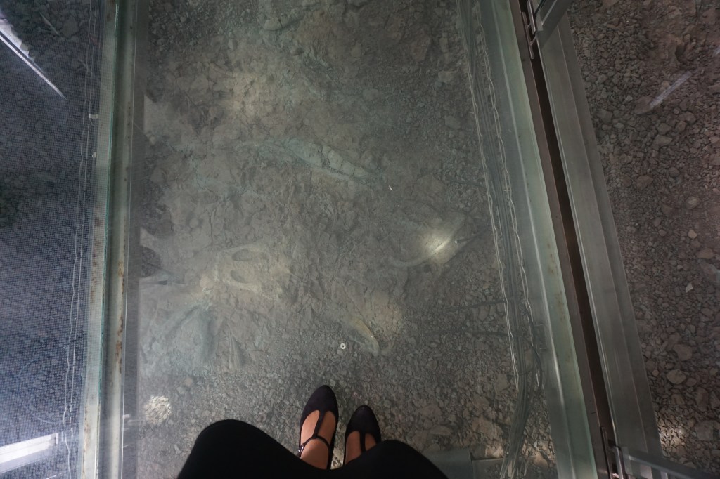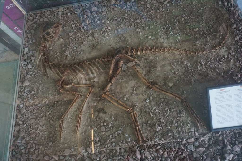 Po drodze na trasie przechodzimy przez pawilon czy też muzeum paleontologiczne, które powstało dzięki inicjatywie Uniwersytetu Opolskiego. Do dziś odbywają się prace badawcze, zjeżdżają tu studenci z całego świata na okres dwóch tygodni (można ich zobaczyć w lipcu, sierpniu i wrześniu), podczas których całe życie zamyka się na poszukiwaniu szczątek dawnych istnień. W budynku możemy zobaczyć wykopane skamieliny i odnalezione fragmenty dinozaurów czy stworzeń, które żyły jeszcze przed nimi. Został tu odnaleziony gatunek Silesaurus Opolensis, który jest znany na całym świecie tylko z tego miejsca. Jako dziecko zupełnie tego nie zakodowałam, podejrzewam, że też niespecjalnie mnie to obchodziło i bardziej zwracałam uwagę na walory widokowe, ale to dość budujący, ważny dla nas fakt. Pawilon może i nie jest wielki, ale dość ciekawy, bo rzeczywiście można dostrzec znaleziska gołym okiem, ponadto chodzimy po szklanej platformie i znaczna część znalezisk znajduje się pod naszymi stopami.