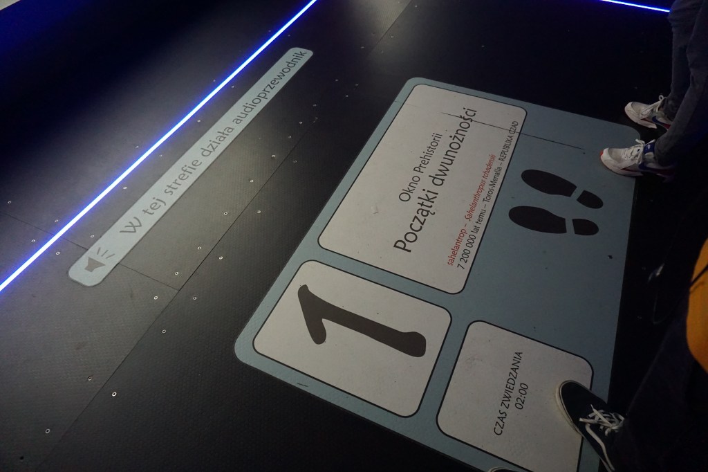 Jeśli zaś chodzi o drugą część biletu kompleksowego czyli Centrum Nauki i Ewolucji Człowieka, to wejścia odbywają się co godzinę o pełnej godzinie, ostatnie o 16.00, więc zdążyliśmy rzutem na taśmę. Jeśli przyjdziemy parę minut za wcześnie, możemy skorzystać z interaktywnej poczekalni – zrobić sobie zdjęcie, a także stanąć przed ekranem, na którym wybieramy człowieka w różnym stadium rozwoju (homo sapiens, homo erectus i tak dalej). Kamerka przetwarza obraz i zamienia nas w małpę, która porusza się tak samo jak my… no prawie. Uśmiałam się przy tym niesamowicie, bo ruchy komputera są tak nieudolne, że jeśli tylko nie trzymamy rąk odwiedzionych od reszty ciała, to całkowicie się gubi. Do tego stopnia, że moja małpka potrafiła włożyć sobie rękę w żołądek, a przy tańczeniu jak Egipcjanin krzyżowała ręce tak, że już dawno wylądowałabym ze złamaniami w szpitalu. Głupiutka rozrywka, ale dla zabicia czasu jak najbardziej polecam.