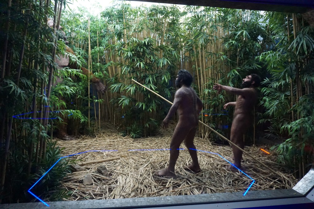 Po projekcji przechodzimy do następnego szeregu pomieszczeń. Część z nich to zwykłe wystawy z figurami, część to krótkie filmiki 3D. Żeby posłuchać historii z nimi związanych, należy stanąć w polu otoczonym laserem z oznaczeniem strefy. Wtedy czujnik automatycznie nas wynajduje i w słuchawkach włącza się odpowiednie nagranie. Trwają one zazwyczaj 2-3 minuty i oprócz tego, że lektor ma dziwne powiedzonka i wstawki, to przekazywane informacje są dość ciekawe – jak zmieniało się polowanie na przestrzeni lat, ceremonie pogrzebowe, sposób życia człowieka. Znowu: byliśmy jedynymi osobami, które słuchały od początku do końca, więc przy wyjściu zostaliśmy sami, a obsługa już troszkę nas poganiała, żeby puścić nam końcową projekcję w kapsule czasu. To akurat wydało mi się przykre, bo jednak zapłaciło się za coś, z czego prawie się nie skorzystało, a jak już się skorzystało, to uchodziłeś niemalże za dziwaka, który wszystko opóźnia.