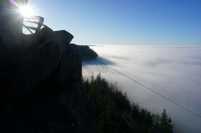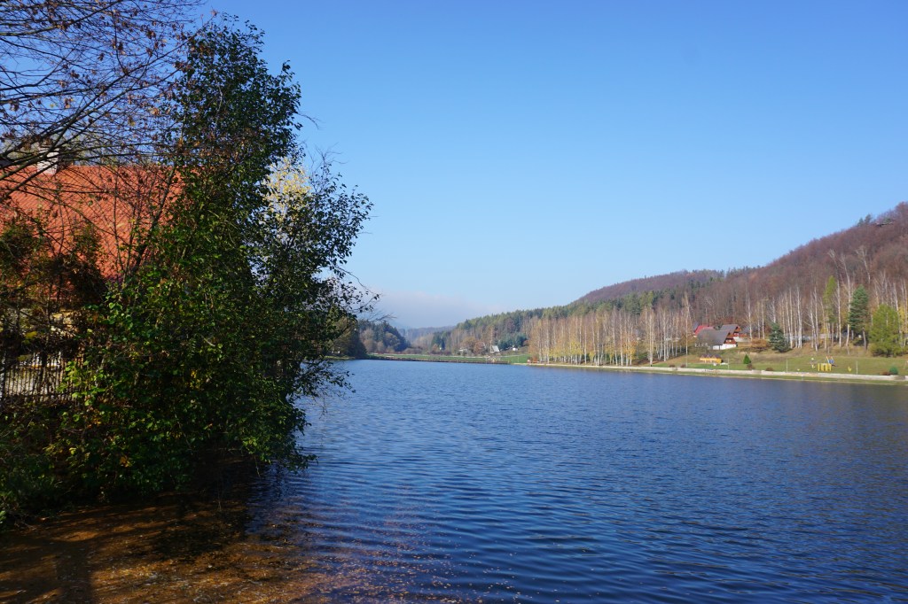 Dzieci dość mocno czekają na plac zabaw i park rozrywki, do których trzeba przejść ze dwieście metrów już od głównego szlaku. Na miejscu znajdują się karuzele krzesełkowe (jedna duża dla dorosłych, niestety nieczynna, druga mała dla dzieci), niewielka kolejka z wagonikami i wahadło z łodzią. Oczywiście obskoczyliśmy wszystkie atrakcje, nie bacząc na wiek czy inne zahamowania, zwłaszcza że Szymon nigdy wcześniej nie był w wesołym miasteczku. Przed wahadłem zjedliśmy jednak gofra, żeby dotrzymać do obiadu, no i może nie był to najlepszy pomysł ze względu na lekkie mdłości, dzięki którym zapewniliśmy sobie dodatkowe doznania. Oczywiście usiedliśmy na samym końcu statku, by w kulminacyjnym momencie znaleźć się jak najwyżej i bawiliśmy się przednio. Mała rzecz, a tak cieszy, zwłaszcza że z góry mamy ładny widok na jezioro i łabędzie. 😀